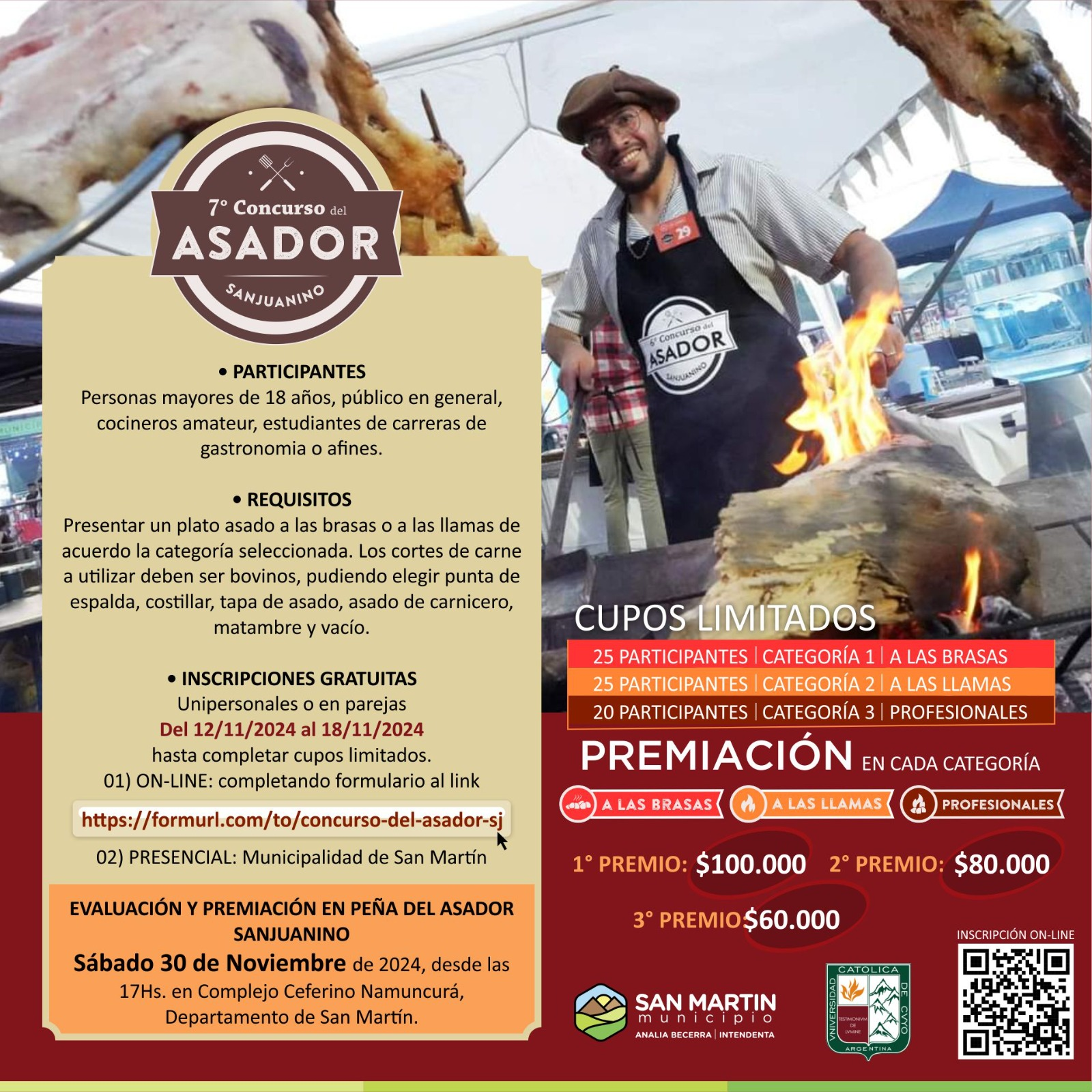 El sábado 30 de noviembre, en el departamento de San Martín, provincia de San Juan, volverá a llenarse de sabor y música, en la 7° edición del Concurso del Asador Sanjuanino.