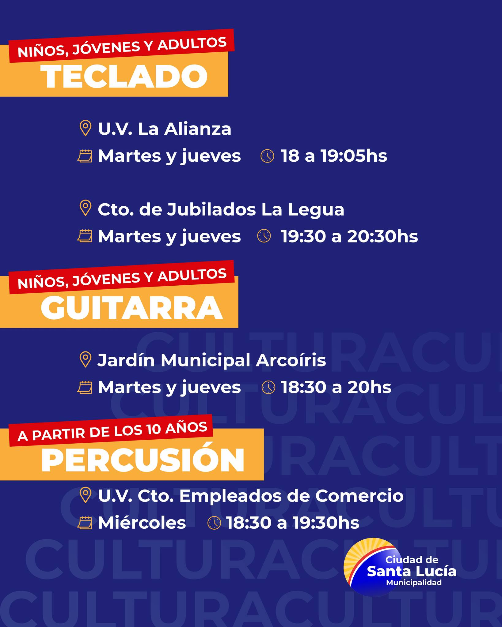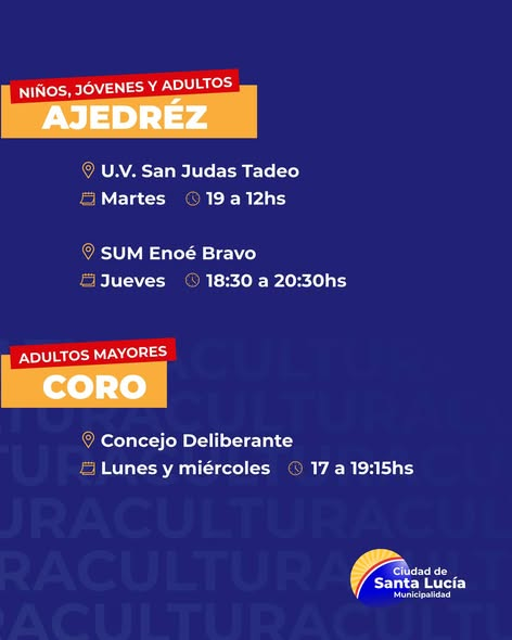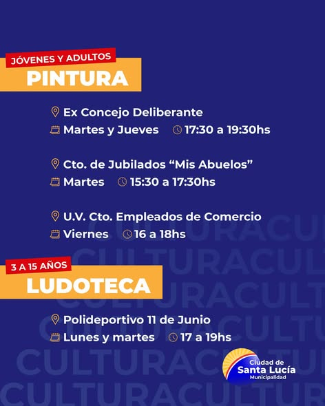 SANTA LUCIA ¡Sumate a las actividades culturales! EL REPORTERO 17 de abril de 2026 La Escuela de Arte Municipal te invita a participar en sus talleres anuales gratuitos Para inscribirte debés asistir en el horario y días especificados en cada taller. ¡No te quedes afuera! Navegación de entradas Anterior: ¡Sumate a las actividades deportivas en tu barrio! Más historias SANTA LUCIA ¡Sumate a las actividades deportivas en tu barrio! EL REPORTERO 17 de abril de 2026 SANTA LUCIA ¡Te esperamos! EL REPORTERO 10 de abril de 2026 SANTA LUCIA En cada rincón de Santa Lucía EL REPORTERO 10 de abril de 2026