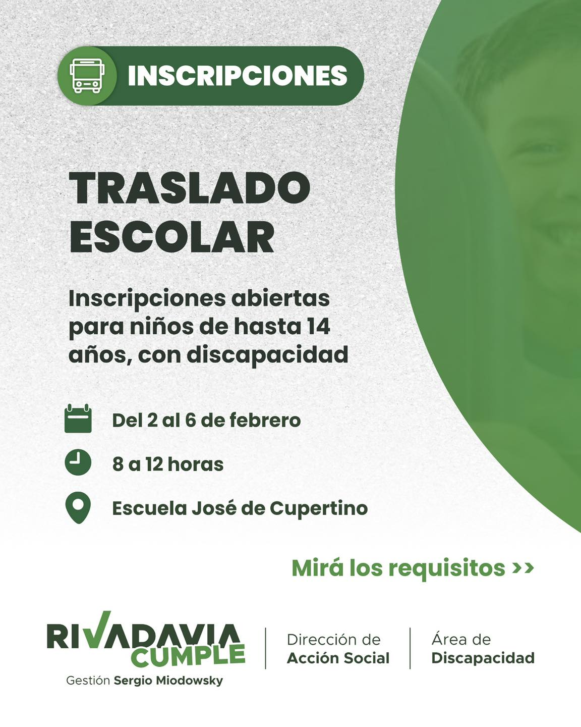 Acompañamos a las familias garantizando el acceso a la educación con el servicio de Traslado Escolar para niños con discapacidad de hasta 14 años.
