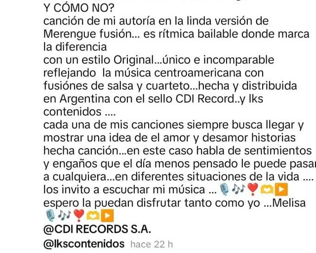 Melisa expresó en sus redes: